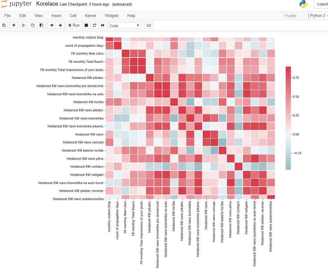 Korelace s denní návštěvností webu a Facebooku Česko je nano